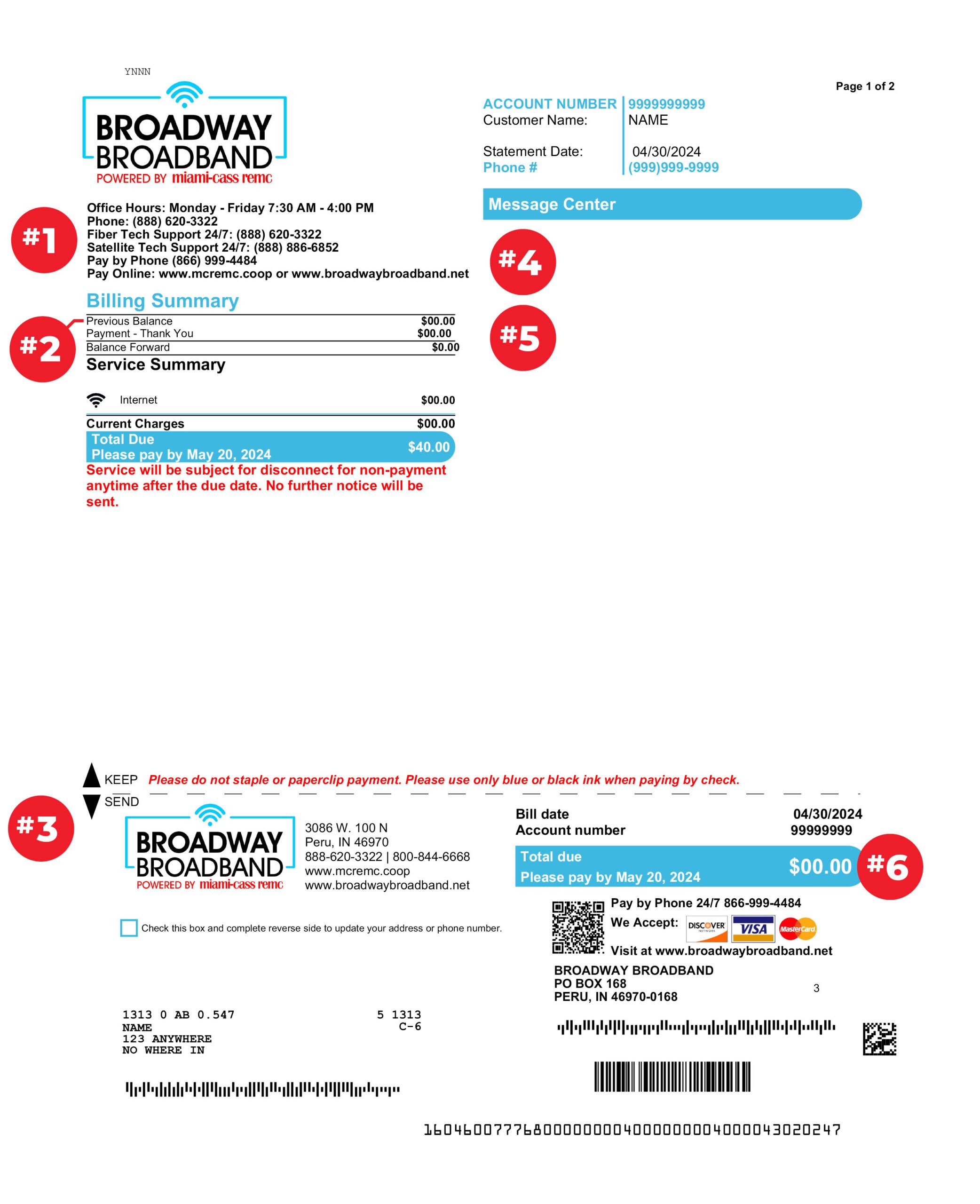 Call Broadway Broadband at the phone number indicated, or stop by our office during business hours.